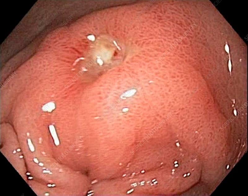 Peptic ulcers happen when the acids that help you digest food damage the walls of the stomach or duodenum. Normally, a thick layer of mucus protects the stomach lining from the effect of its digestive juices. But many things can reduce this protective layer, allowing stomach acid to damage the tissue.